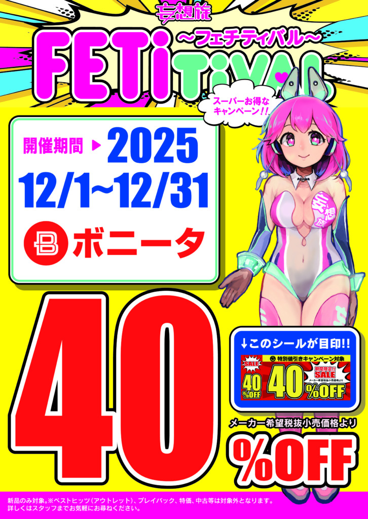 新品DVDキャンペーン(ボニータ/妄想族) 40%オフ!! 2025年12/1日(月)~スタート!!
