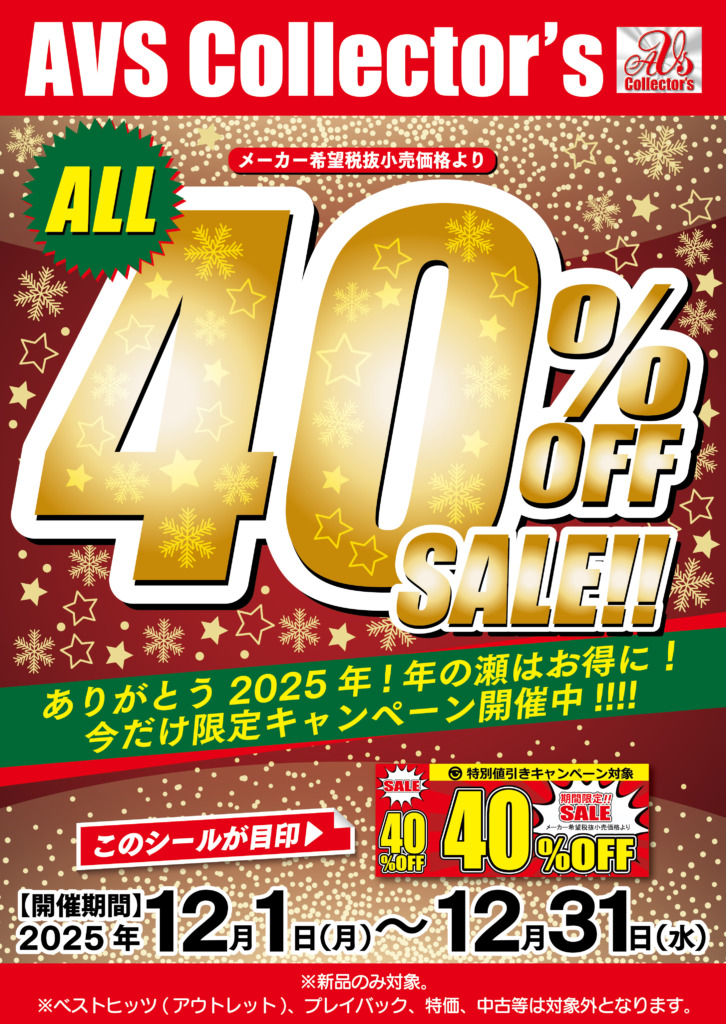 新品DVDキャンペーン(AVS collectors’s) 40%オフ!! 2025年12/1日(月)~スタート!!